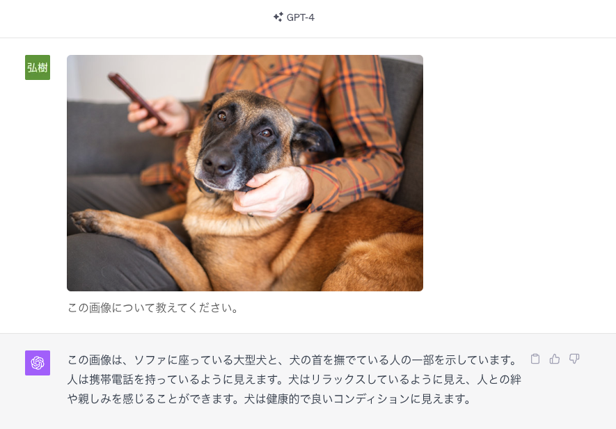 - 画像の解析能力の向上 GPT-4Vは、GPT-4に比べて、画像の解析能力が向上しています。1 GPT-4は、テキストのみの入力に対応していましたが、GPT-4Vは、画像のみの入力や、画像とテキストの混合入力にも対応しています。1 GPT-4Vは、画像に写っている物や人物の説明や、画像に関連する質問の回答などが可能です。1 例えば、以下のような入力と出力が考えられます。